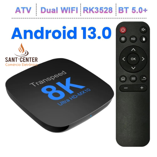 TV Box Android 13 Wifi duplo com Apps 8K Vídeo BT5.0 + RK3528 4K 3D Voice Media Player 2Gb 16Gb