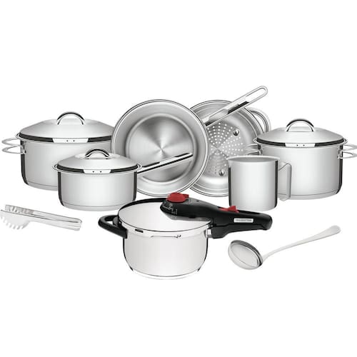 Jogo de Panelas Tramontina Aço Inox Solar 6 peças + Panela de Pressão Tramontina Solar 4,5L