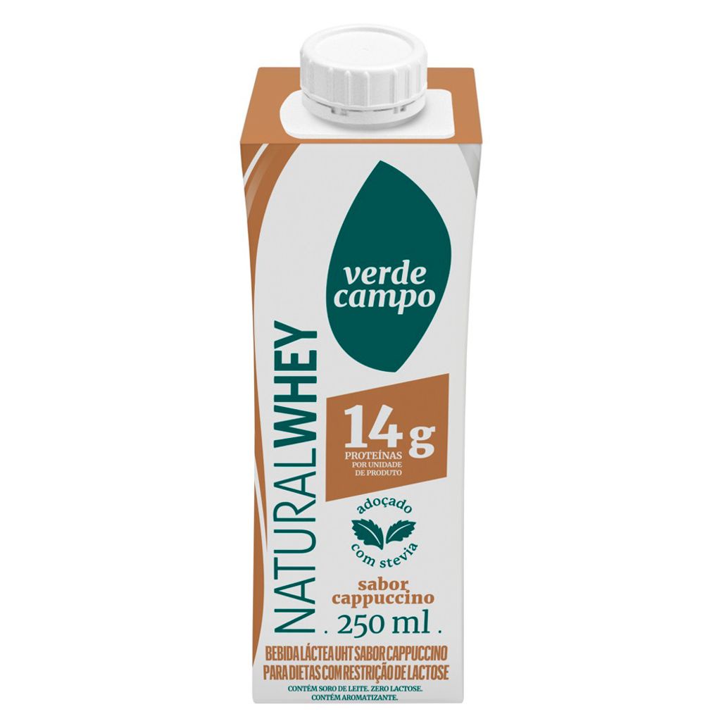 Bebida Láctea UHT Natural Whey Shake Verde Campo com 14g de Proteína Sabor Cappuccino Zero Lactose 250ml
