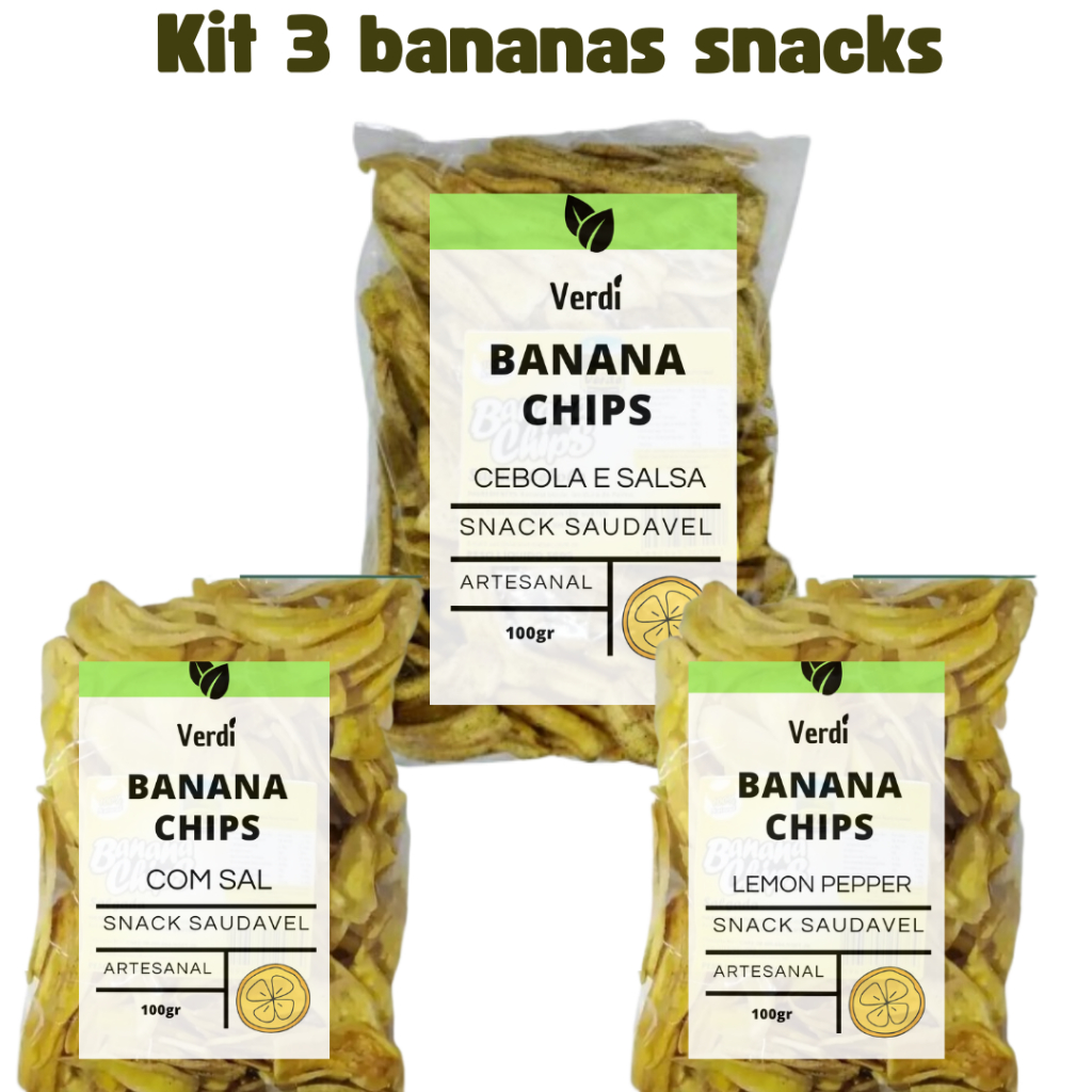 Kit Bananas chips com sal, cebola e salsa e lemon pepper - snack, petisco