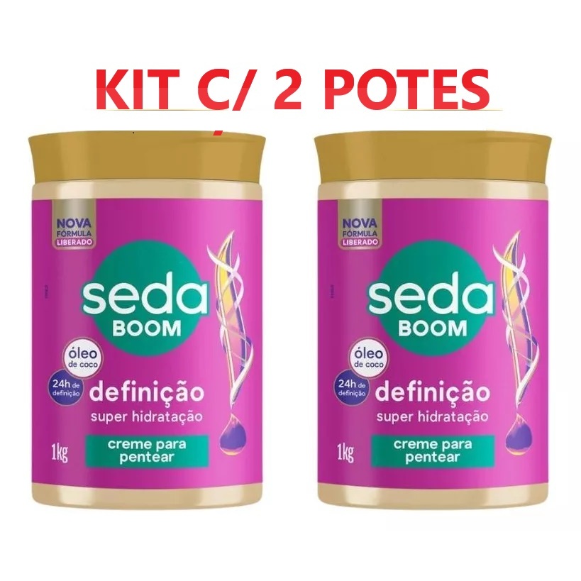 Kit com 2 unidades Creme de Pentear Cachos Crespos Boom Definição Seda Blogueiras 1Kg Óleo de Coco