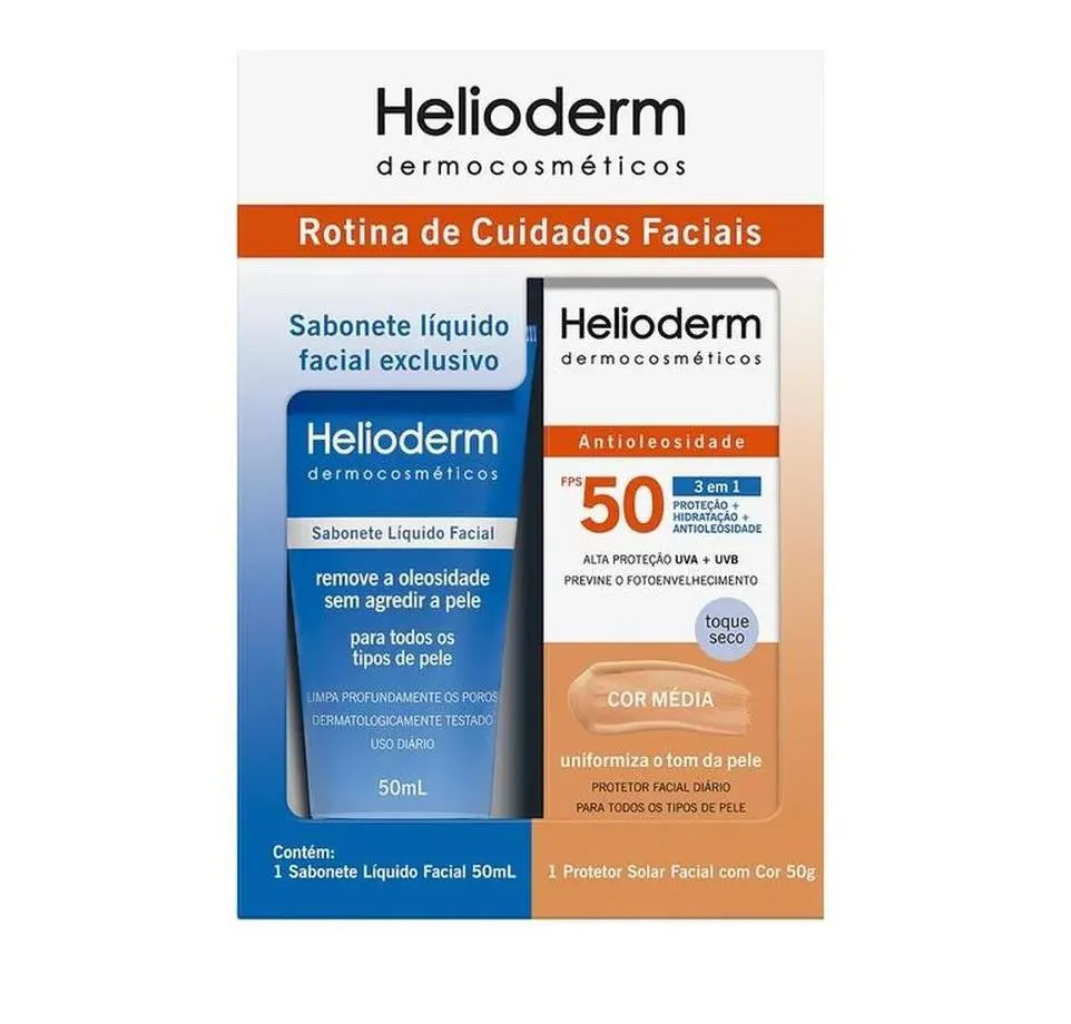 Kit Facial Helioderm – Sabonete Líquido Facial 50Ml + Protetor Solar Fps 50 Cor Média 50G