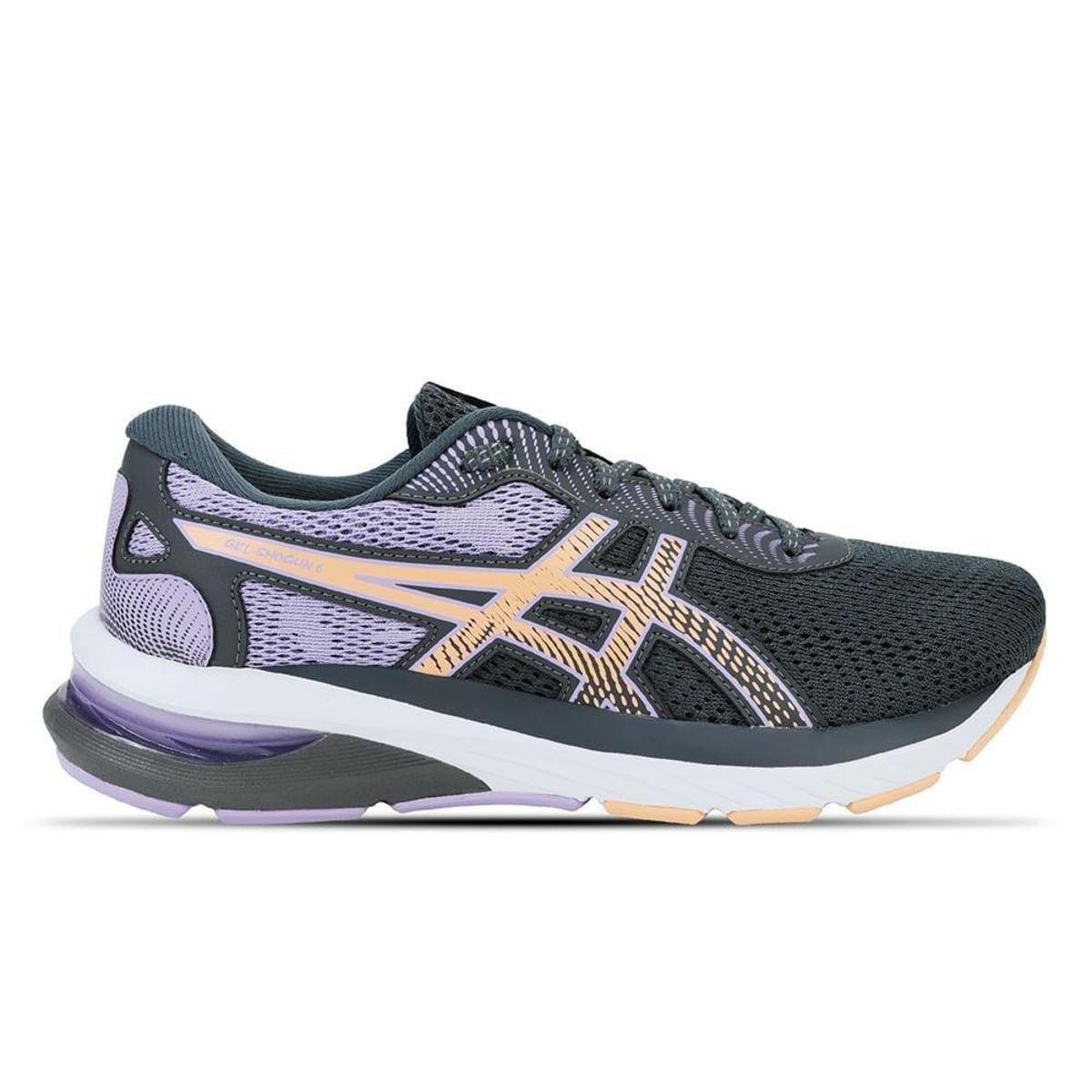 Tênis ASICS GEL-Shogun 6 - Feminino - Cinza com Lilás e Laranja