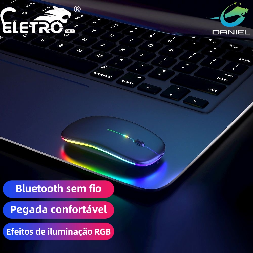 Mouse sem fio Eletro mex com Bluetooth recarregável sem fio RGB LED ergonômico