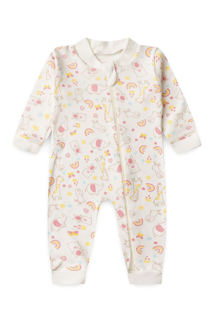 Macacão Bebê sem Pé Suedine Off White Safari Encantado (RN/P/M/G/1) - Bebê Fofuxo