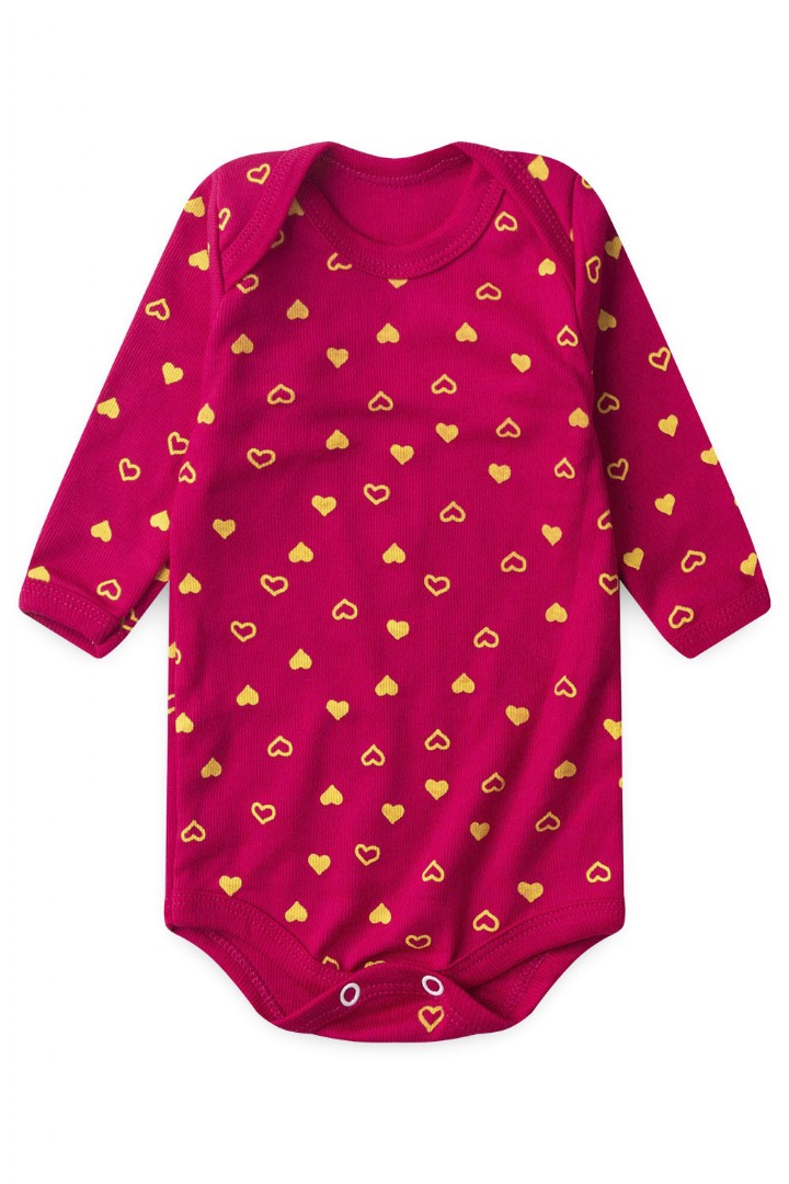 Body Bebê Feminino Canelado Manga Longa Pink Corações (RN/P/M/G) - Top Chot