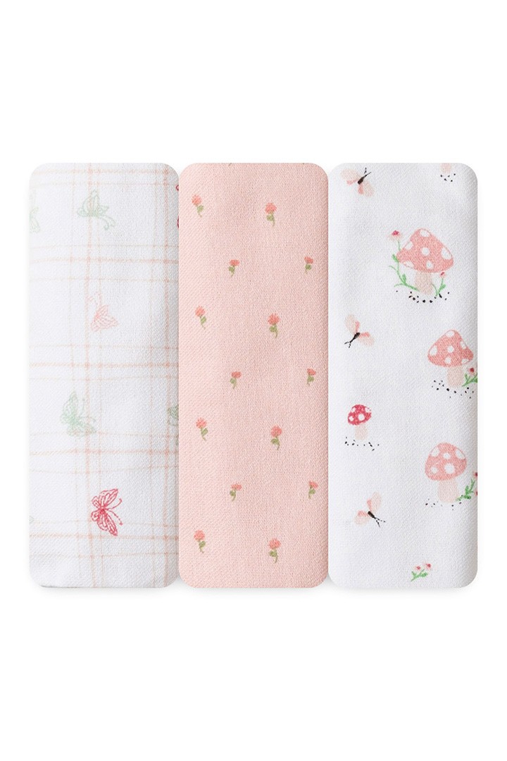 Kit Cueiro Bebê Feminino Flanelado Branco e Rosa Borboletas (3 unidades) - Papi