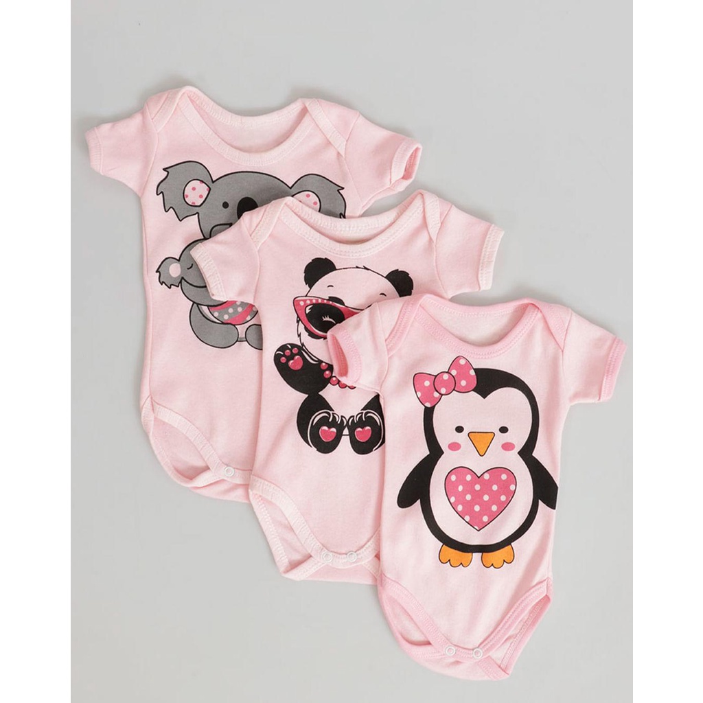 Body Bebê Manga Curta Estampa Sortida Rosa Claro