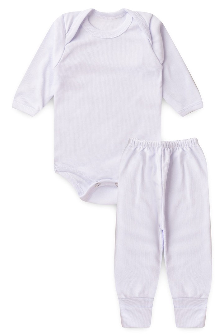 Conjunto Pagão Bebê Body Longo e Mijão Vira-Pé Canelado Branco (RN/P/M/G) - Top Chot