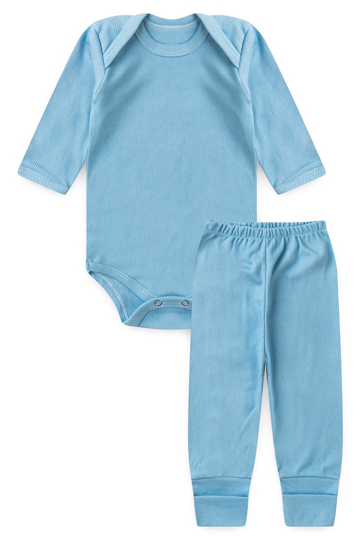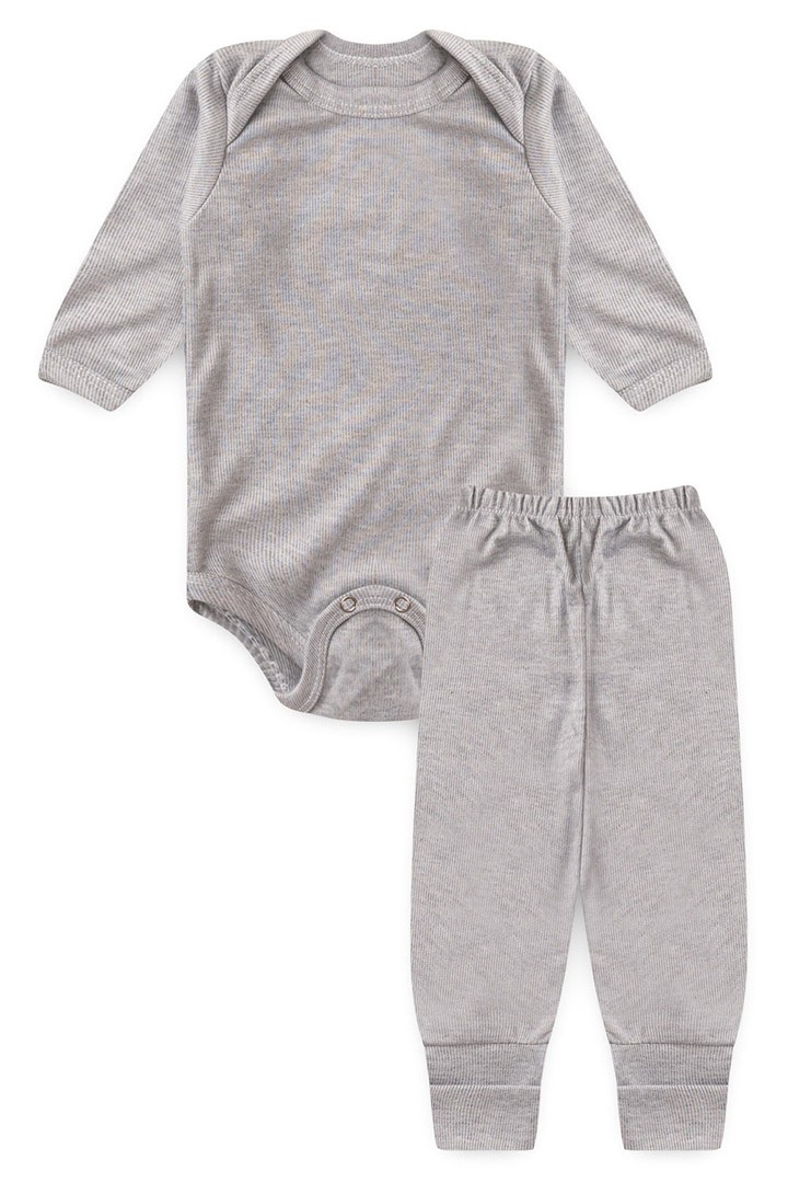 Conjunto Pagão Bebê Body Longo e Mijão Vira-Pé Canelado Mescla (RN/P/M/G) - Top Chot
