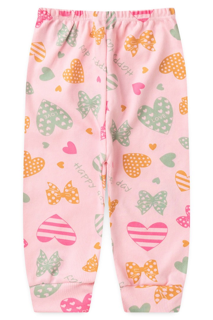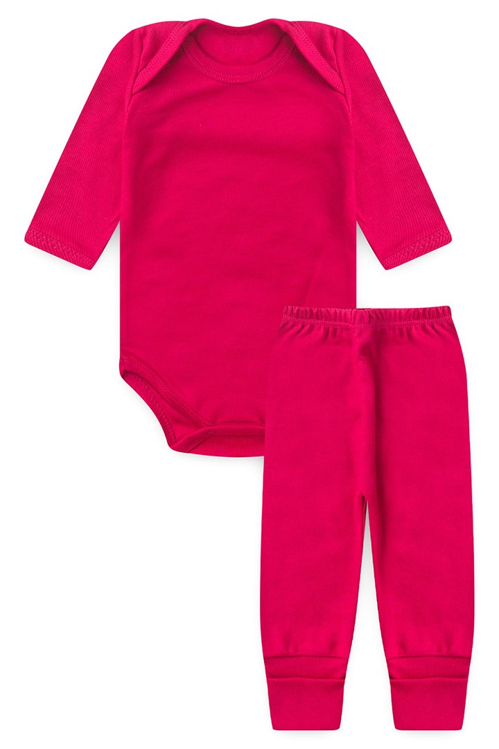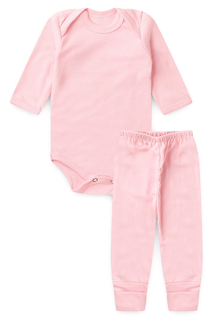 Conjunto Pagão Bebê Feminino Body Longo e Mijão Vira-Pé Canelado Pink (RN/P/M/G) - Top Chot