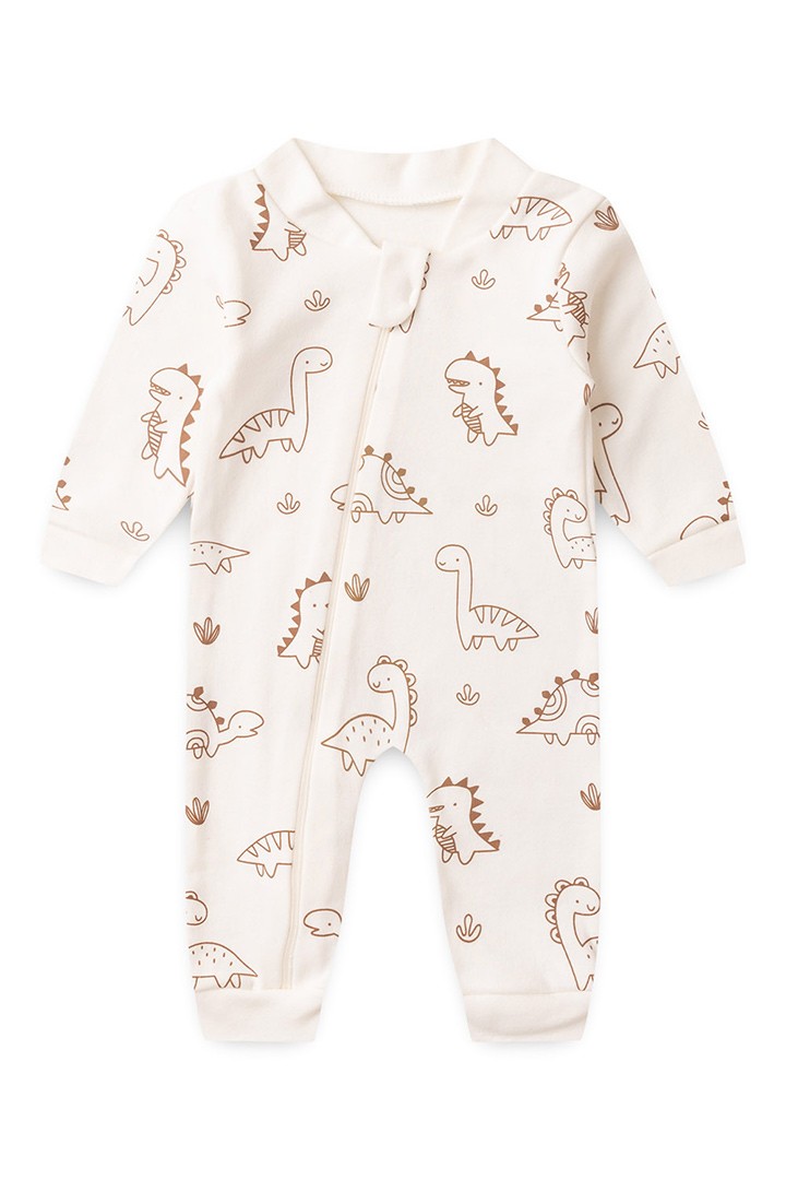 Macacão Bebê sem Pé Suedine Off White Dino (RN/P/M/G) - Bebê Fofuxo