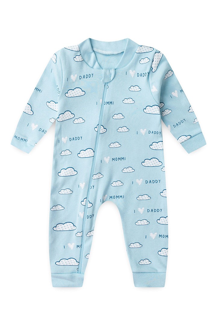 Macacão Bebê Masculino sem Pé Suedine Azul Nuvenzinha (RN/P/M/G) - Bebê Fofuxo