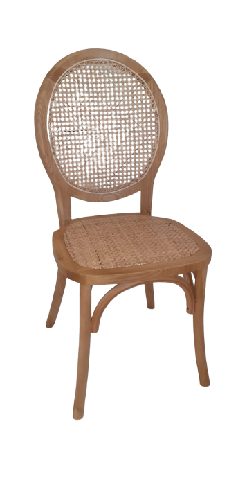Cadeira em Madeira Natural com Assento em Rattan Natural e Encosto em Tela - Empilhavel