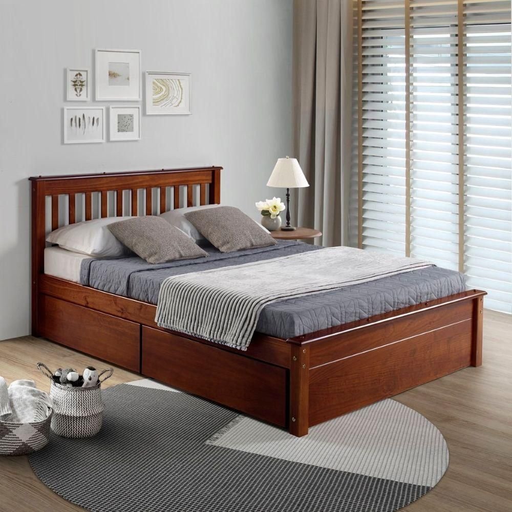 Conjunto Cama Casal Inglesa Com Dois Gavetões Em Madeira Maciça Mv Outlet Mel