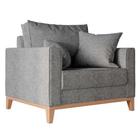 Poltrona Noronha Estofada Madeira Natural e Tecido Algodão Cinza - 71235