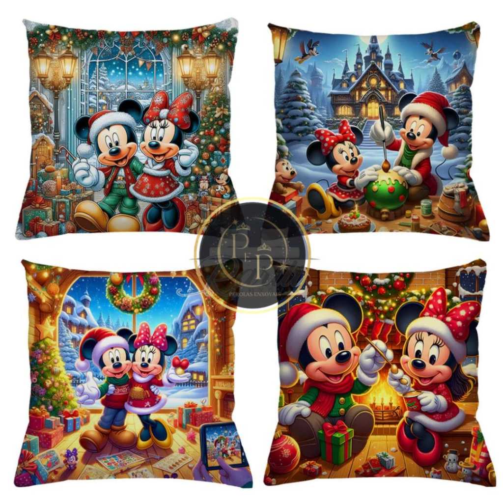 KIT 4 CAPAS PARA ALMOFADAS DE LUXO MICKEY E MINNIE FELIZ NATAL 45X45
