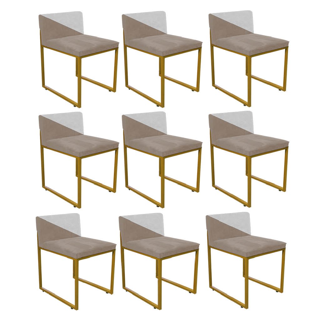 Kit 09 Cadeira Office Lee Duo Sala de Jantar Industrial Ferro Dourado Corino Bege e Branco - Ahz Móveis