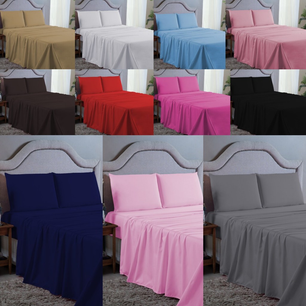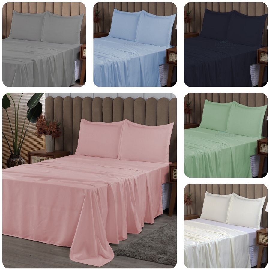 Jogo de Lençol Casal Queen Com Elástico 4 Peças 400 fios Micropercal Acetinado Fronha Com Aba
