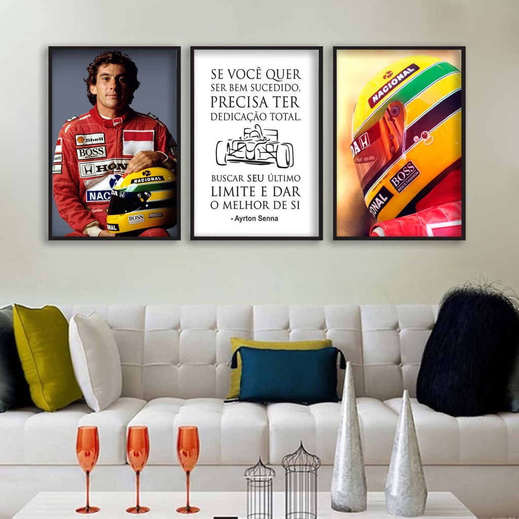 Kit Quadros Decorativos 3 Peças Grandes Mclaren Ayrton Senna decoração sala quarto Formula Um 4K