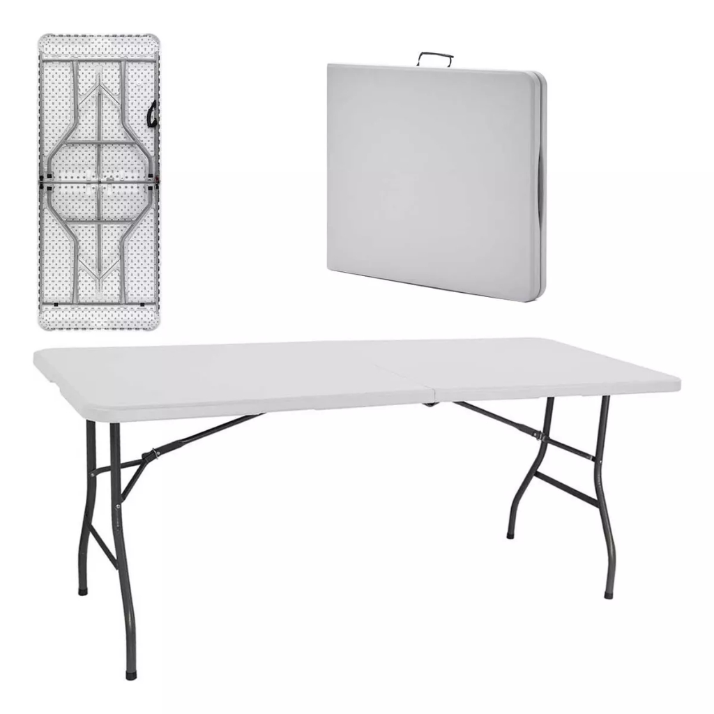 Mesa Portátil 1,80 Dobrável Até 150kg Vira Maleta Com Alça para Camping Praia Prática