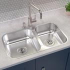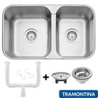 Cuba Dupla de Embutir/Sobrepor Tramontina Inox Acetinado Isis BS 2c 34-28 69x40 + Válvulas + Sifão Duplo