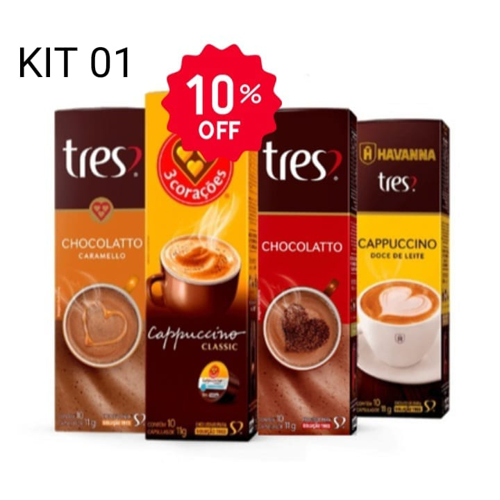 Kit Cápsula TRES 3 Corações 4 Sabores