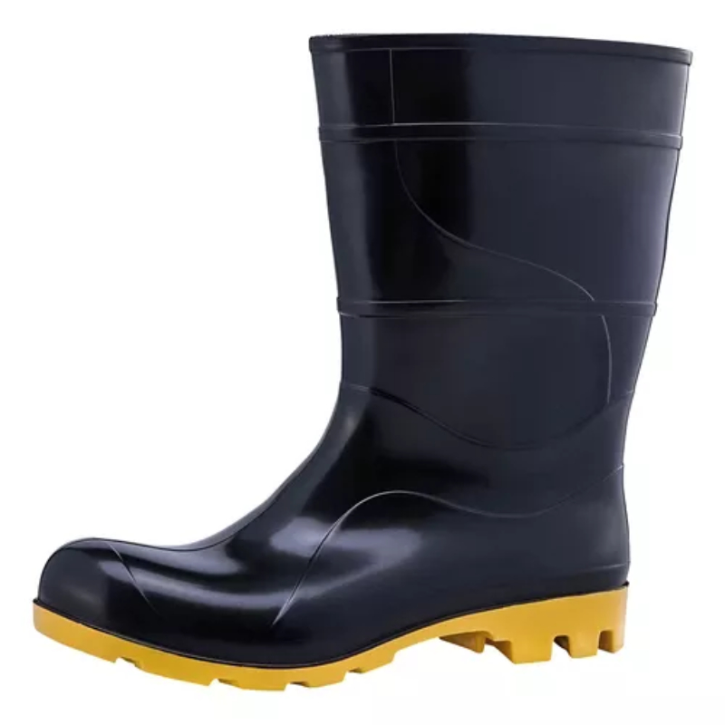 Bota de Borracha PVC Galocha Solado Amarelo Cano Médio 25cm sem Forro Masculina Trabalho