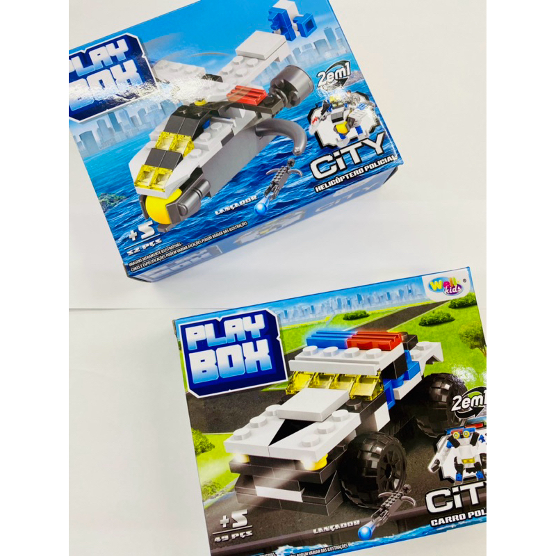 bloco de montar Lego de policial, carro de polícia helicóptero da policia 49 pecas