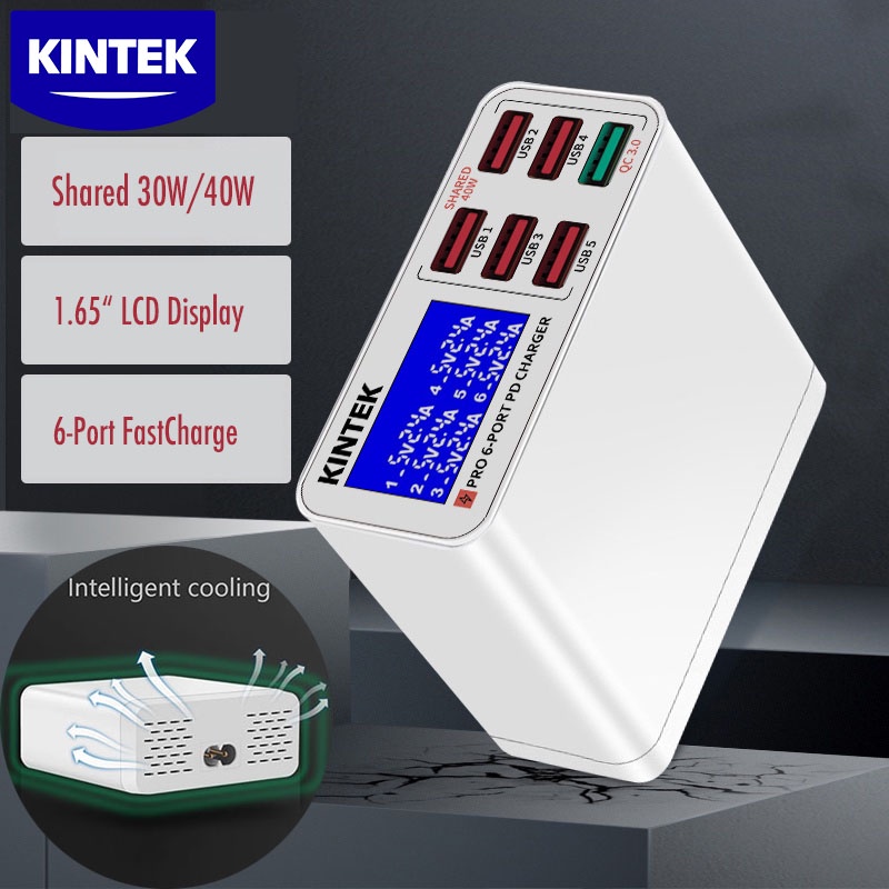 KINTEK 30W 40W EU 6 Porta USB Carregador De Parede Turbo Rápido 3.0 Com Visor LED