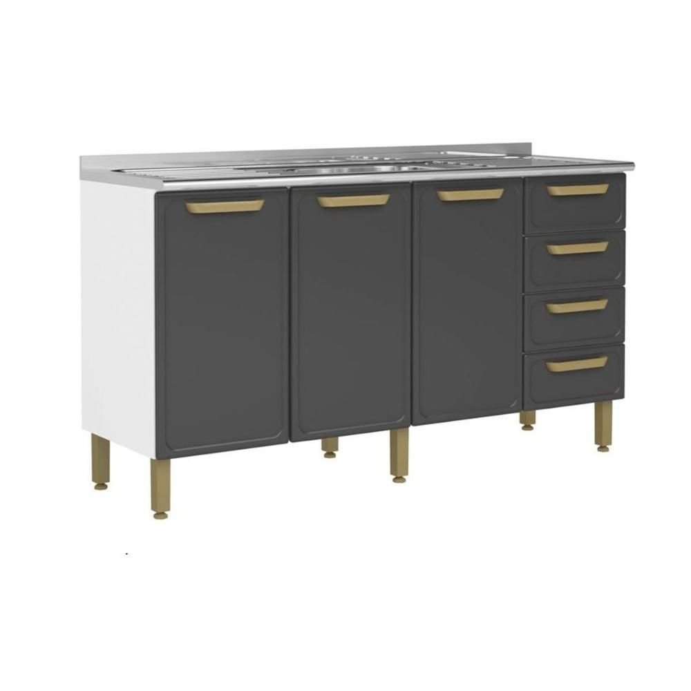 Gabinete de Cozinha Modulado C/ Pia Bella C/ 3 Portas e 4 Gavetas 160cm Grafite - Bertolini
