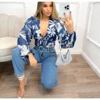 Blusa cropped feminino max floral manga longa bufante lastex na cintura modelo fashion