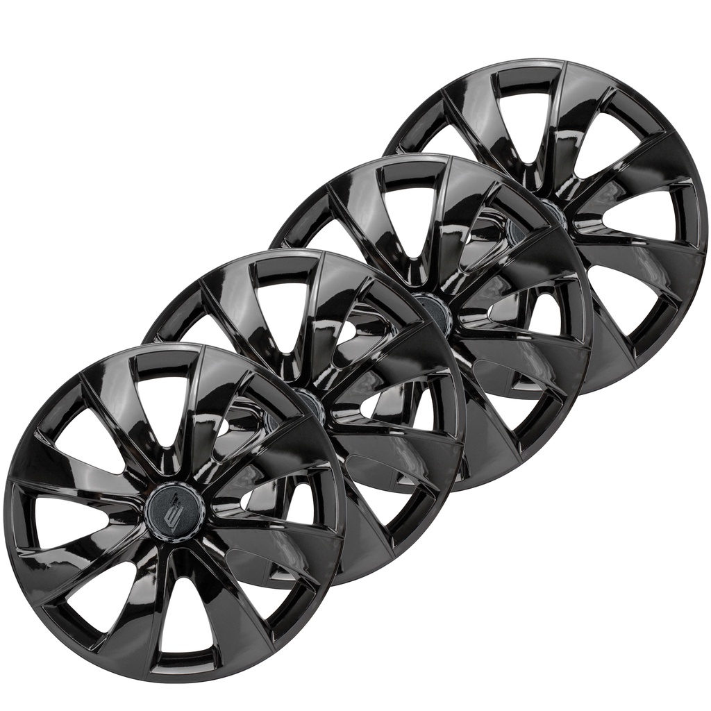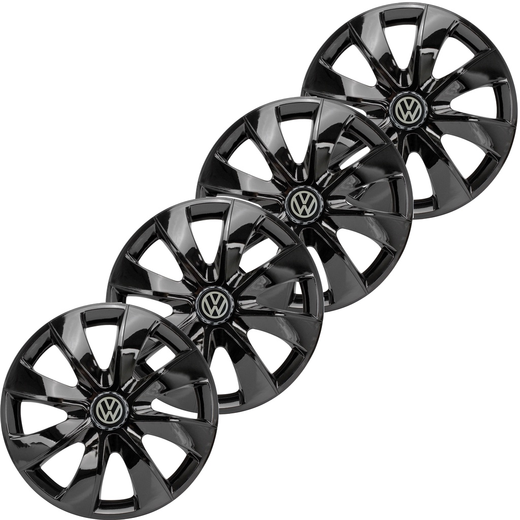 Jogo De Calotas Elitte Prime Unicolor Black Aro 13 + Emblema Volkswagen Fox Gol Golf Jetta Nivus Polo Passat Saveiro T-Cross Taos Tiguan UP Virtus Voyage