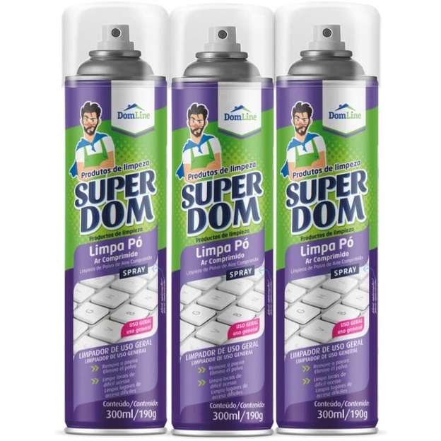 Kit 3 Limpa Pó Ar Comprimido Spray DomLine - 300ml/190g
