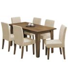 Conjunto de Mesa Sala de Jantar Miami com 6 Cadeiras Trieste Suede 1,60m Cedro / Areia Dobuê