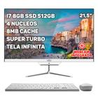 Computador Completo All In One Intel Core i7 21,5" 8GB SSD 512GB 4 Núcleos Super Turbo Webcam Teclado e Mouse Sem Fio - Rocaforte