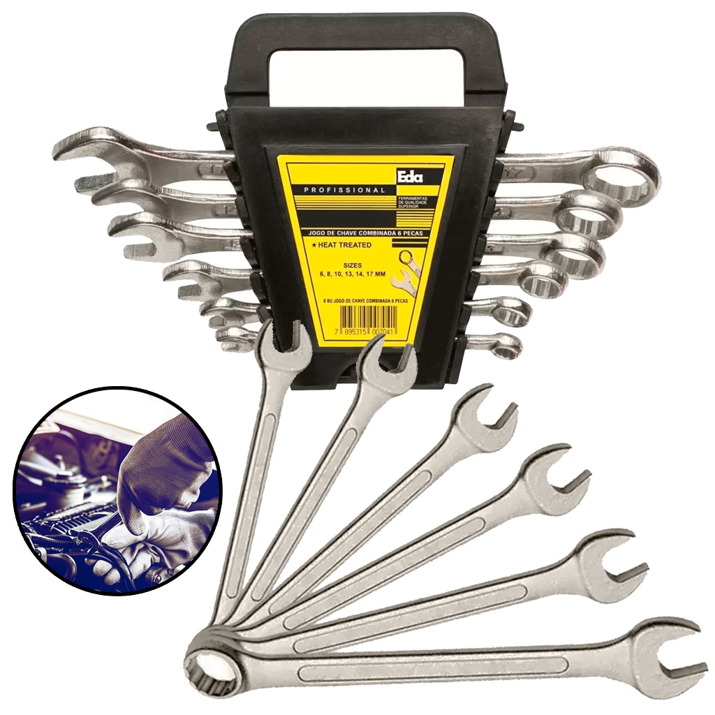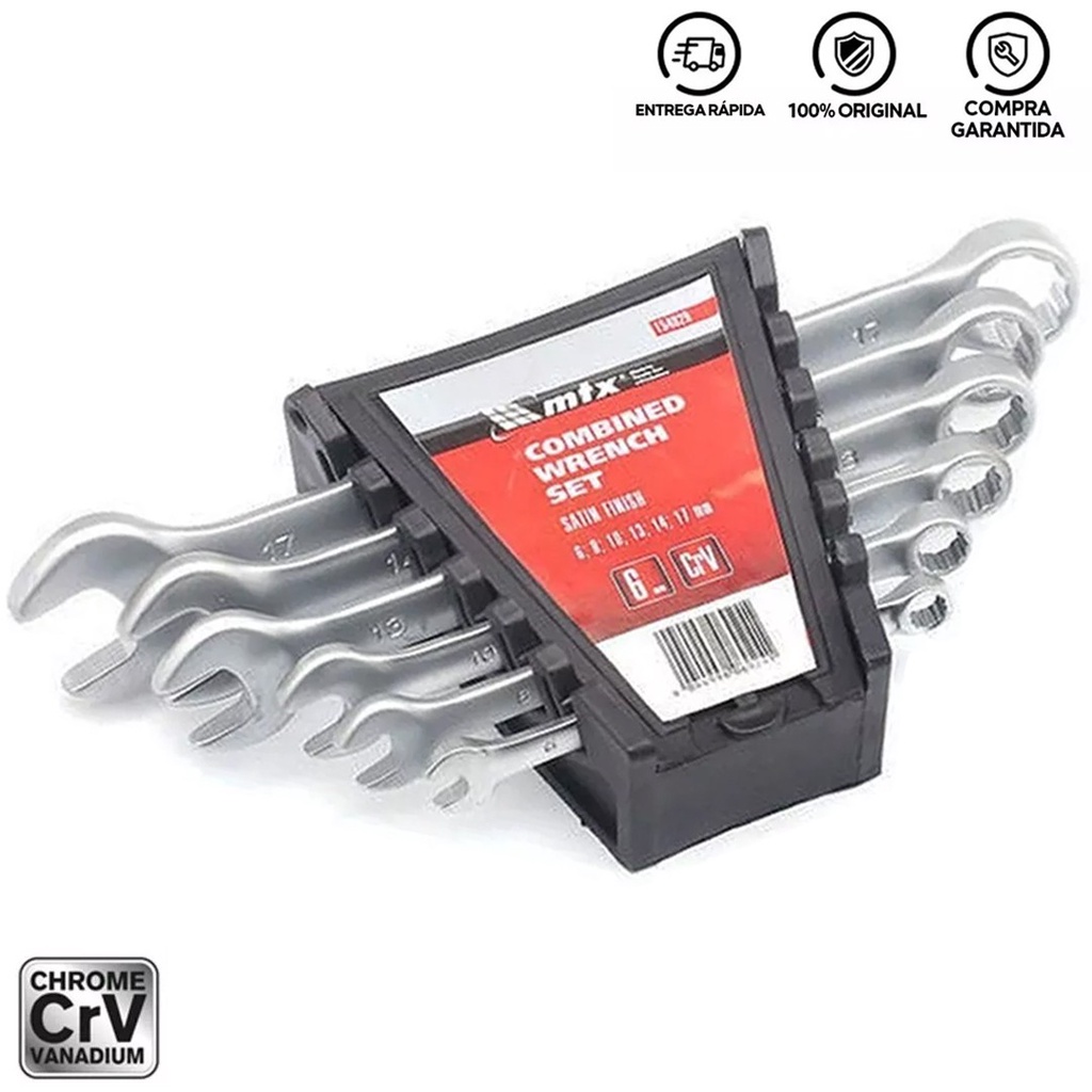 Jogo De Chave Combinada 6 Peças Multiuso Aço Reforçado Com Suporte 6mm A 17mm