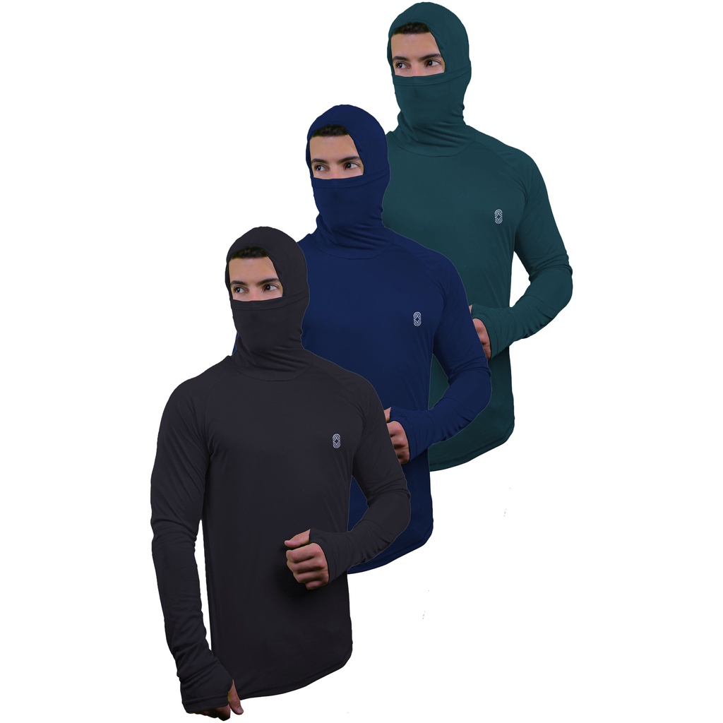 Camiseta Skube Com Máscara e Capuz Proteção UV 50+ Dry Fit Segunda Pele Térmica Tecido Termodry Manga Longa Dedeira