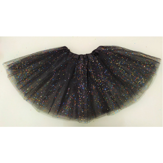 1 Saia De Tule Adulto Glitter Brilho Carnaval 40cm preto