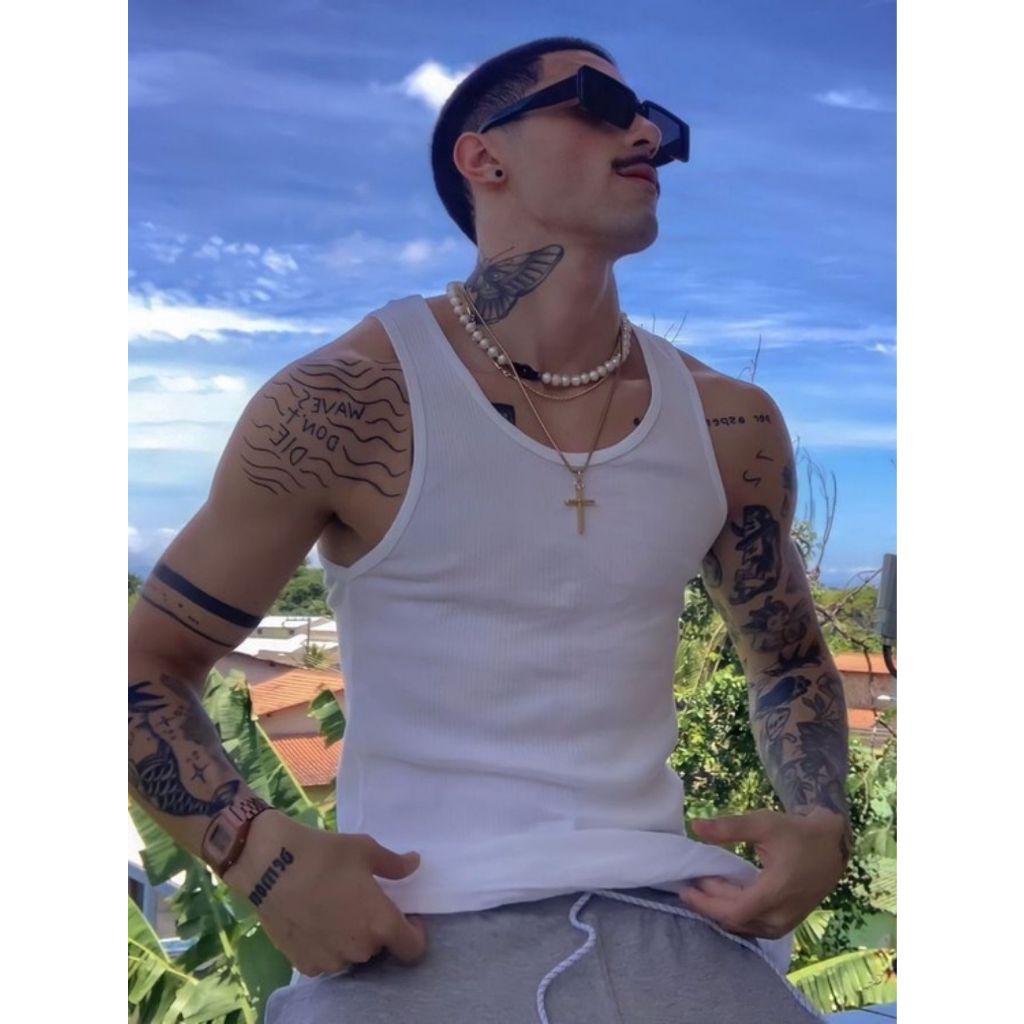 kit com 3 Regata Masculina Branca Preta Justa Canelada de Academia Estilo Americana HIP HOP Rapper Unissex Algodão