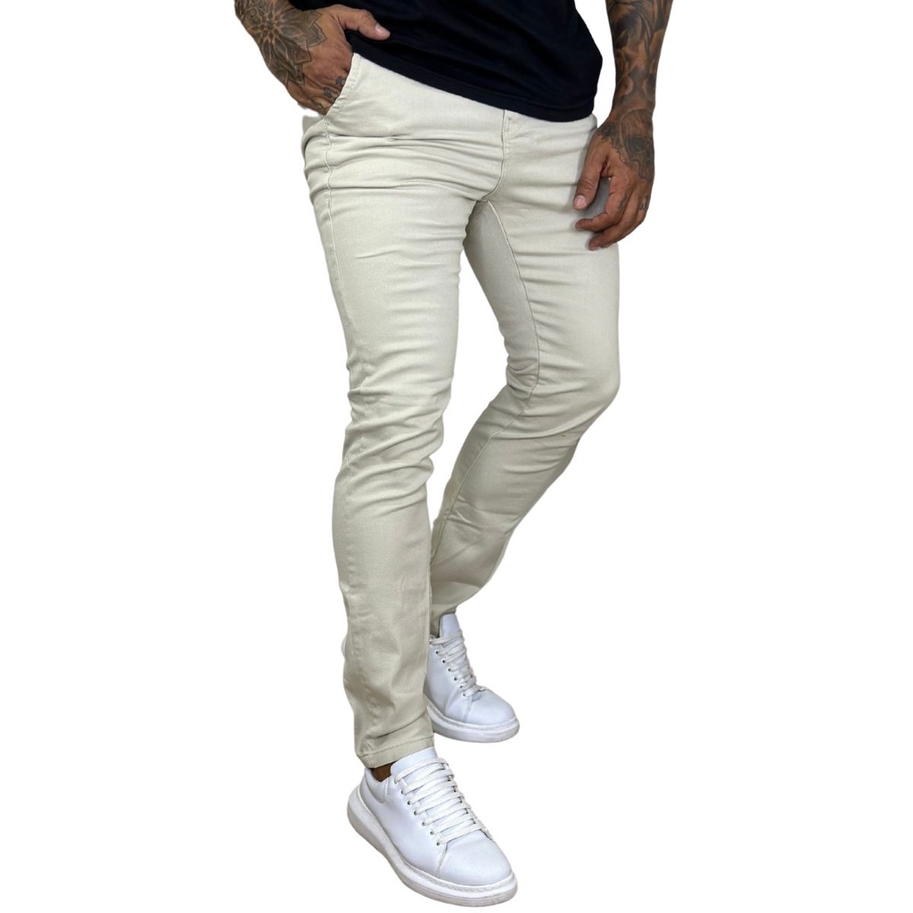 Calça De Sarja Masculina Bolso Faca / Embutido Alfaiataria Bege