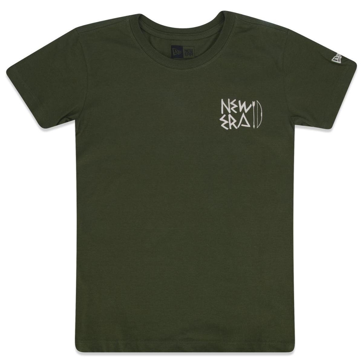 CAMISETA INFANTIL REGULAR MANGA CURTA PRIMITIVE SCRIBBLES ASTECA VERDE MILITAR NEW ERA
