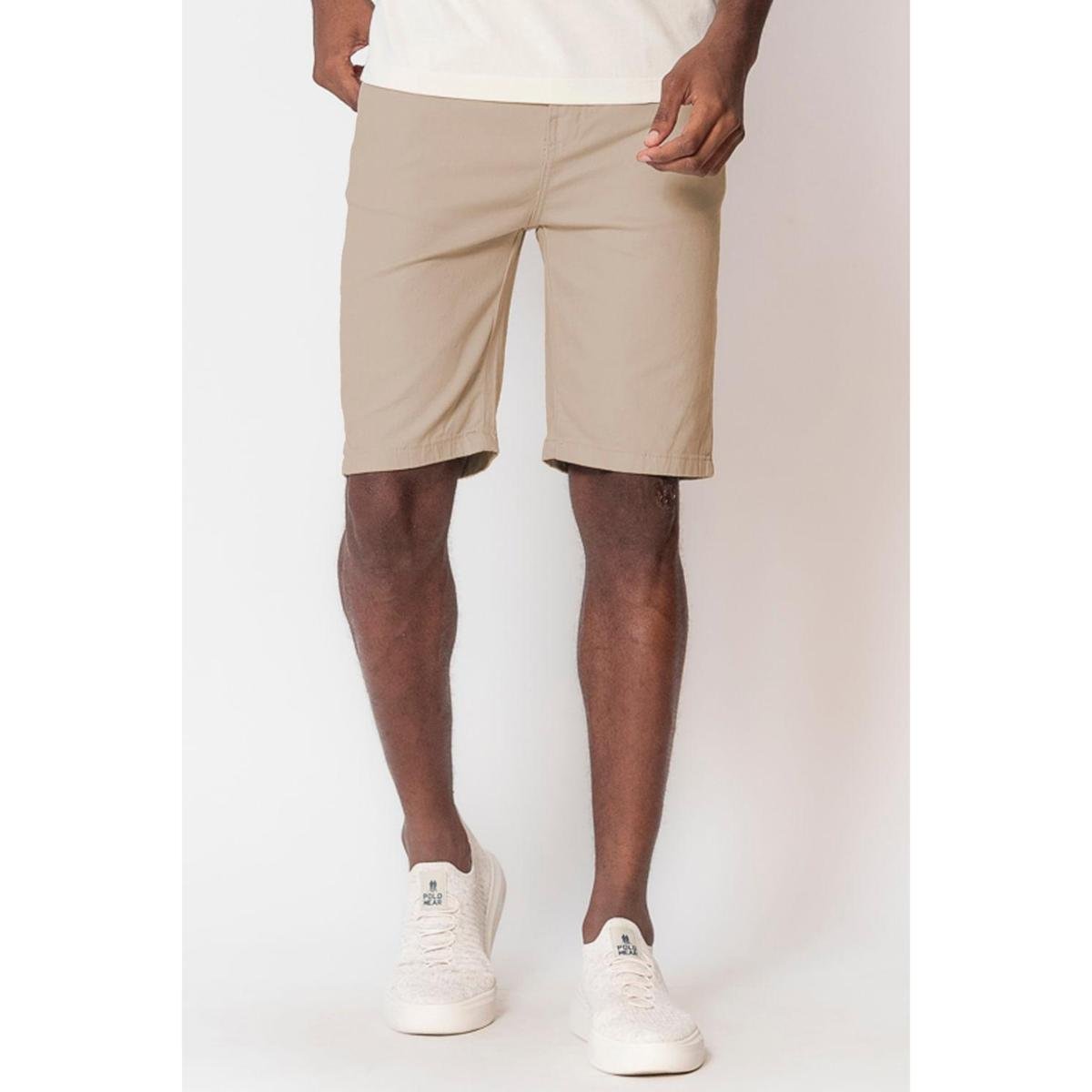 Bermuda Masculina Sarja Slim Polo Wear Bege Escuro