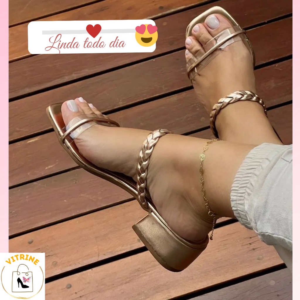 Sandália Feminina Bloco Salto Baixo Tamanco Saltinho Médio Confortável Moda