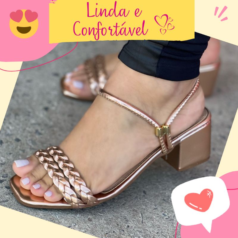 Sandalia Feminina Bloco Baixo Tamanco Salto Saltinho Medio Confortavel