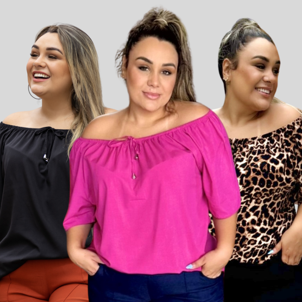 Blusa Feminina Plus Size Ciganinha Ombro a Ombro em Viscose