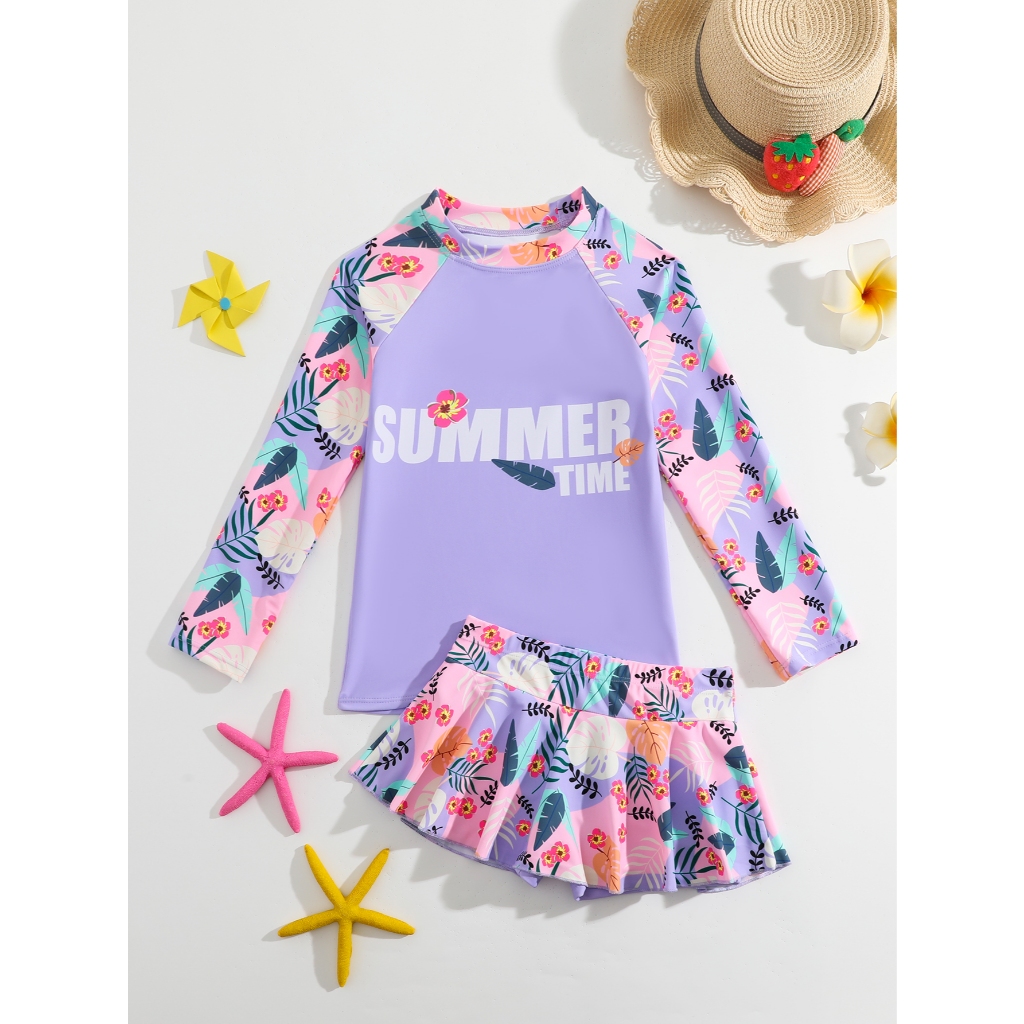 HT VEST Conjunto de Biquíni Infantil com Proteção UV - Tropical e Manga Longa Perfeito para as pequenas curtirem I3111