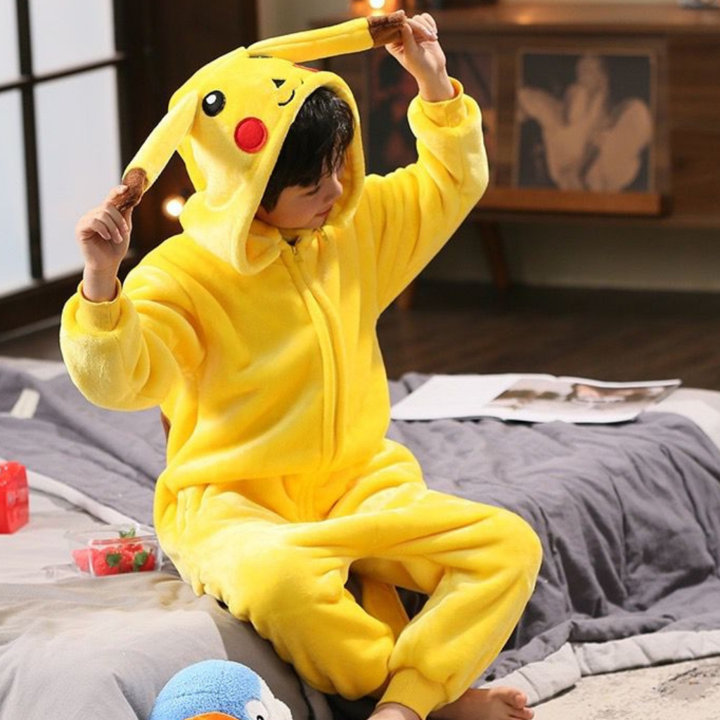 Pijama Macacão Longo Do Pikachu Soltinho Com Zíper E Capuz