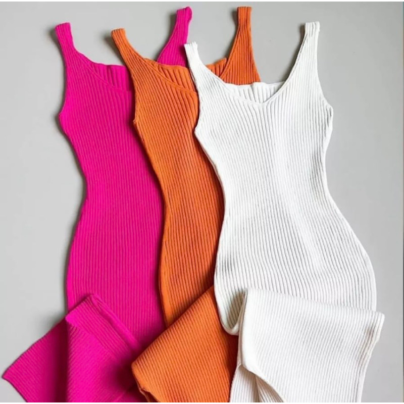 Vestido Regata MIDI Decote V Canelado Com Fenda Lateral Tricot Modal