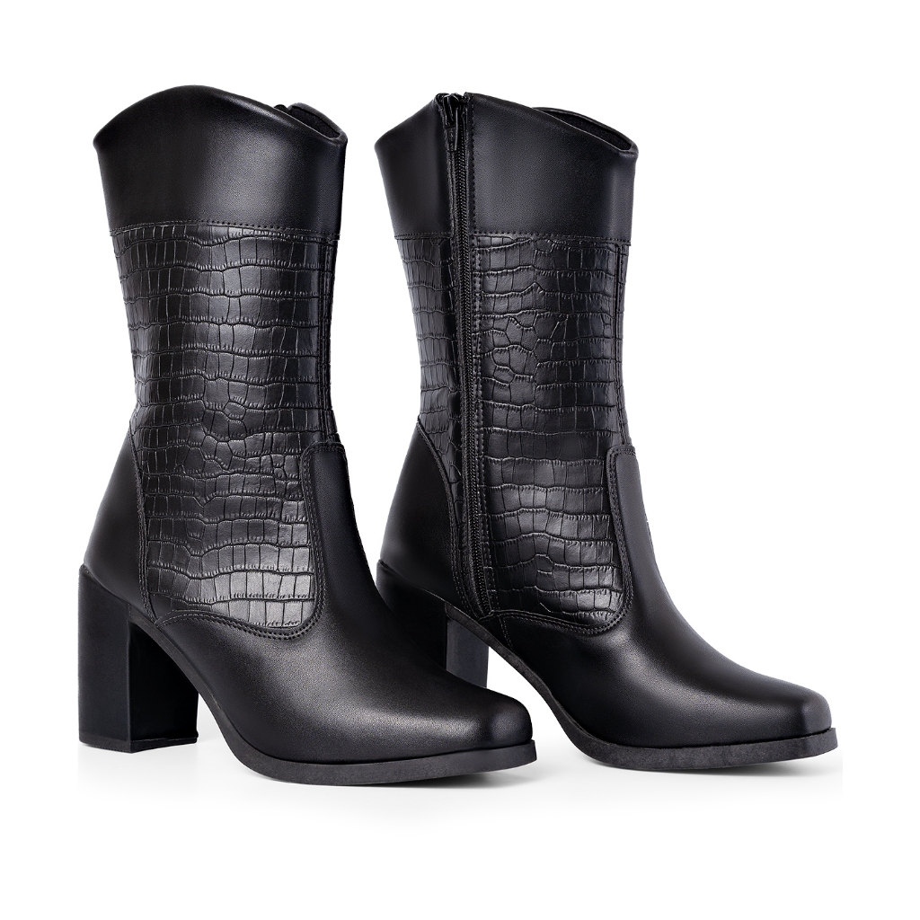 Bota Cano Médio Feminina Salto Alto Bloco Napa Croco